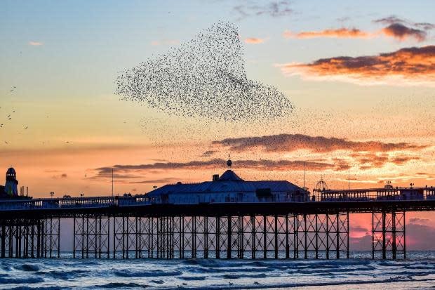Starlings gather in incredibly large flocks and create astonishing visuals. They move as if they are a single large organism, not thousands of individual birds, and rise together in unity. Experts believe starlings come together in these surprising shapes to exchange information and hypnotize predators with their mesmerizing movements.